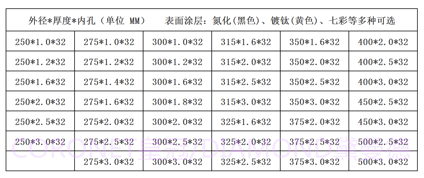 高速鋼鋸片現(xiàn)貨規(guī)格:如下圖